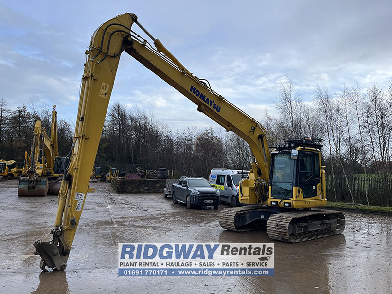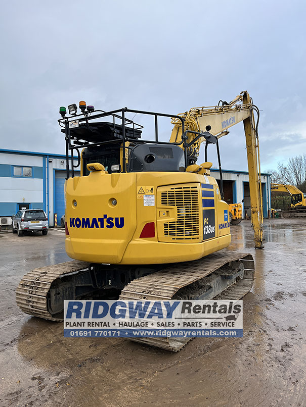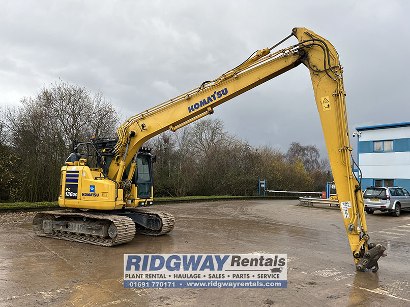 Ridgway Plant Sales are pleased to offer this zero tail swing Komatsu PC138 Long Reach for sale from our excavator hire fleet